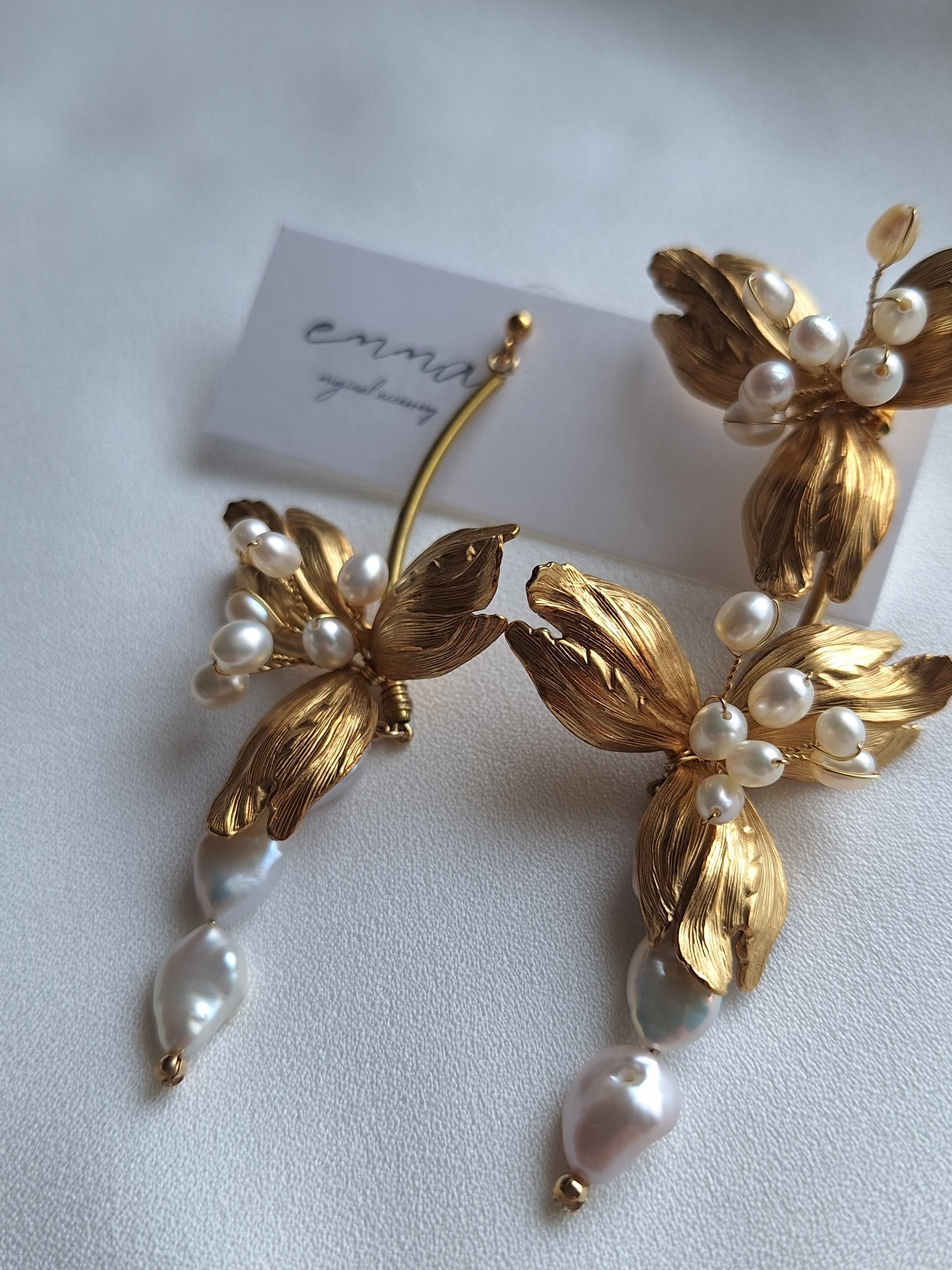大きなお花が華やかなアシンメトリーピアス(イヤリング)