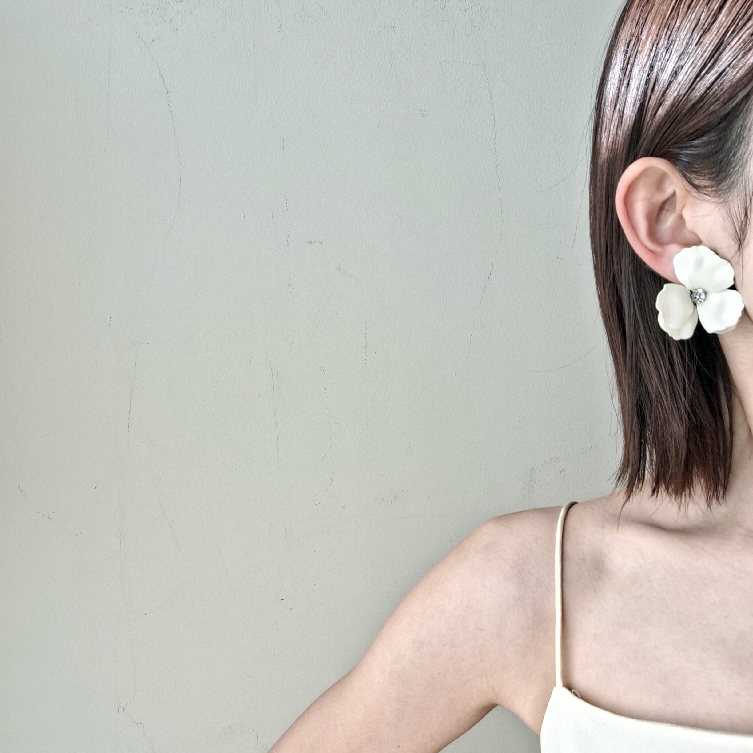 レースのような大きな花びらが魅力的な耳飾りです